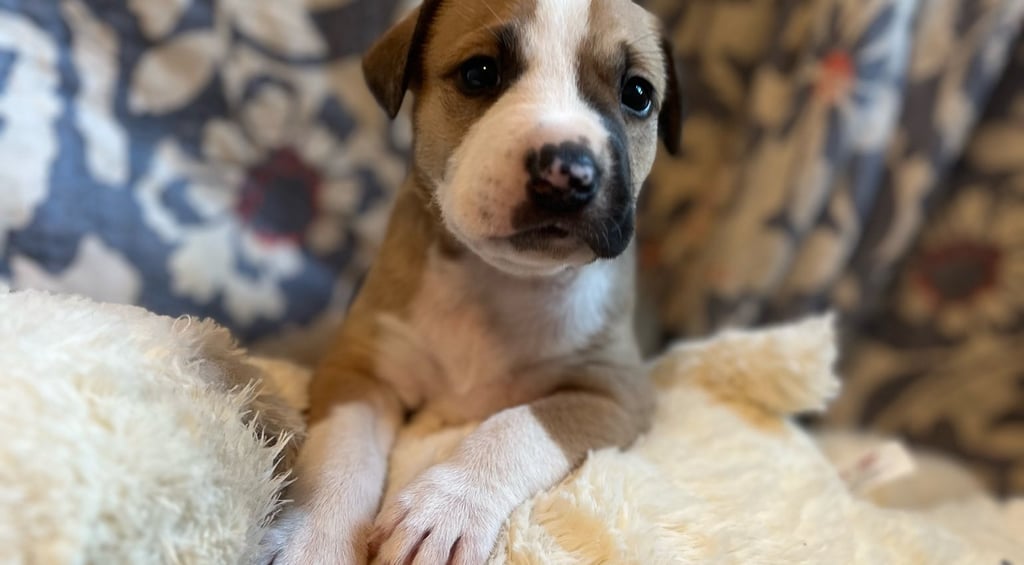 This sweet girl is a bundle of softness and sunshine. Aspen is gentle, curious, and loves snuggling up with her favorite plush toy after a good play session. Her soulful eyes and soft white stripe down her nose make her impossible to resist. Whether she’s exploring new scents or curling up for a nap, Aspen brings a quiet joy to every moment. She’s ready to find a forever home filled with love, patience, and plenty of cuddles