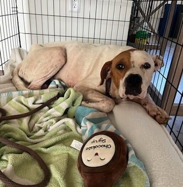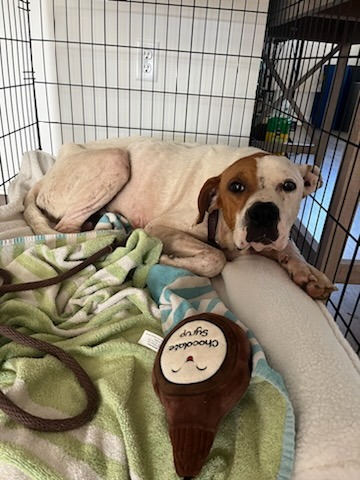 Today, Cooper got a taste of love and kindness. He received a cozy bed to call his own and a toy that made his eyes light up with joy. Watching him wag his tail and play, even for a moment, was a reminder of the incredible resilience and gratitude animals can show when given a chance.