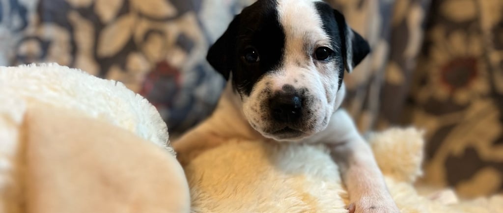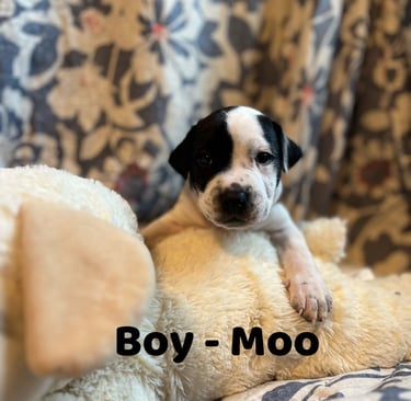 Don’t let the name fool you—Moo is all puppy, no pasture! This lovable boy is full of personality, with a playful bounce and a heart as big as his paws. Moo adores attention, belly rubs, and making you laugh with his silly antics. Whether he’s trotting after a toy or flopping into your lap, Moo is ready to be someone’s loyal sidekick and cuddle champion for life.