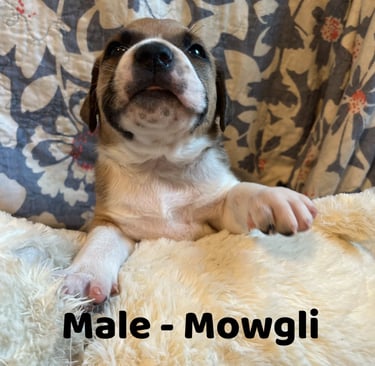 Mowgli is a curious explorer with a heart full of adventure and a nose for mischief. This little guy is always on the move—sniffing out new friends, chasing shadows, and tumbling into cuddles when the day winds down. With his expressive eyes and boundless energy, Mowgli is ready to bring joy, laughter, and a touch of wild charm to a loving forever home.