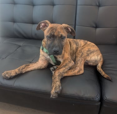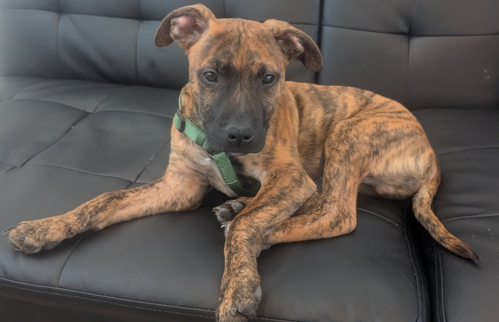 This handsome little stray boy is looking for a family to call his own. With his beautiful brindle coat and soulful eyes, he might remind you of a Plot Houndābut his exact breed is a mystery. What we do know for sure is that heās full of love and has a heart as big as his paws.